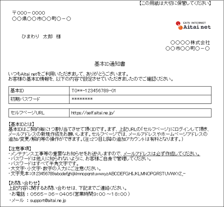この度「Aitai net」では2010年9月28日(火) 午前9時より、インターネットサービスのご契約毎に1つ「基本ID」 という新しいIDを発行させて頂きます。