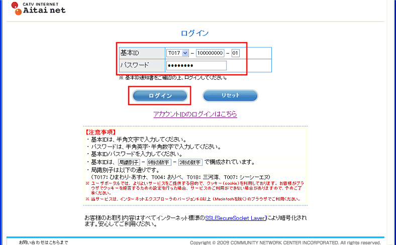 基本ID通知書がお手元に無い場合はこちらからお問合せください。