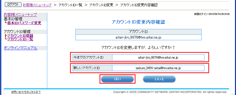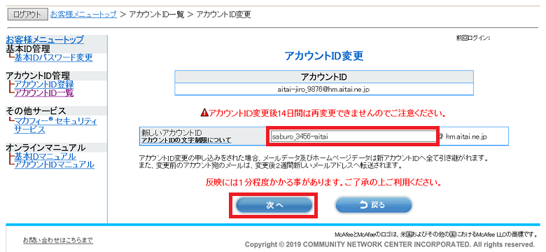 メールアドレスを変更した場合、変更前のメールアドレスを再度ご利用いただくことはできません。