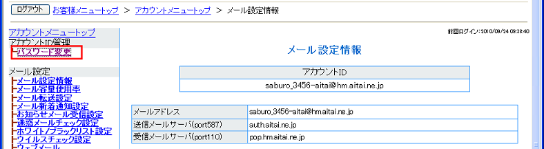 本ページの手順は、メールアドレスのパスワードを新たなパスワードで上書きします。
