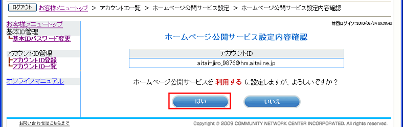 ホームページサービスの初回設定についての説明です。