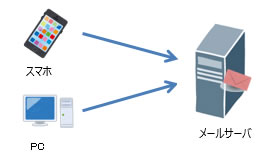 そのため、WebメールやIMAP方式で設定された別のメールソフトと既読/未読の状態やフォルダを共有できます。(サーバ上のメールを参照するため、すべての端末でデータ共有ができる。 )