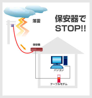 ※本対策はケーブルモデムだけではなく、お客様のパソコン機器の雷対策としても大変有効となっておりますのでぜひ御対応をお願いいたします。